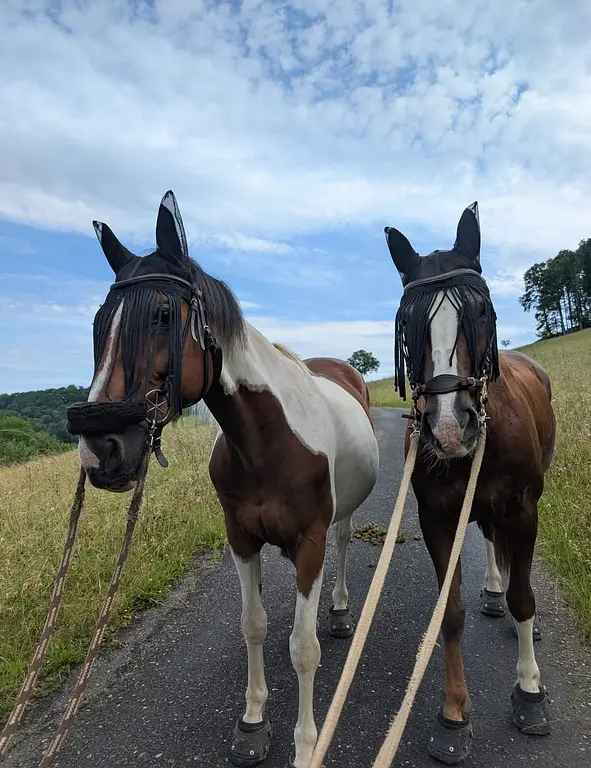 • Die zwei leben in einem Zweier-Offenstall in Selbstversorgung. Deshalb gehört die Stallarbeit genauso dazu, wie die Pflege vom Pferd selbst.