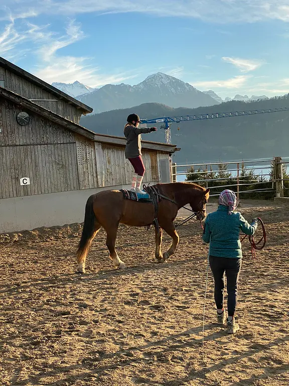 war bis 3jg. Hengst, ausgebildet in Dressur, Springen, Longe und Freiheitsdressur sowie Bodenarbeit.