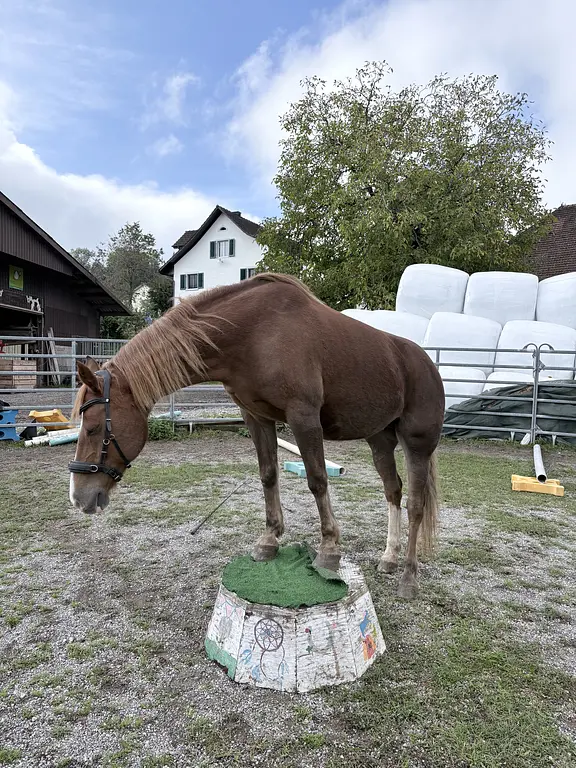 Du kannst mir ihr ausreiten gehen, Bodenarbeit machen oder am Platz mit ihr arbeiten.