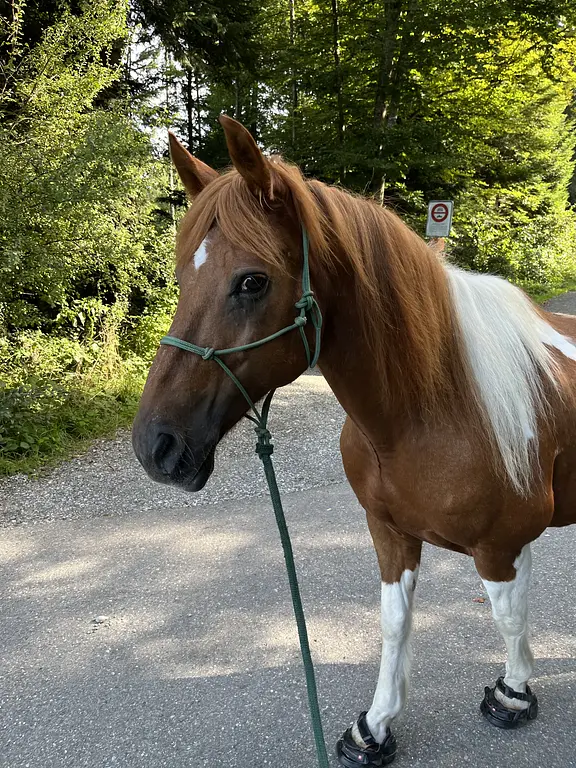 Sueño ist barhuf mit Hufschuhen unterwegs und liebt abwechslungsreiche Beschäftigung. Er geht ohne Probleme alleine ins Gelände und ist in jeder Situation händelbar. Trotzdem braucht er eine klare Führung und liebevolles Durchsetzungsvermögen, da er gerne die Grenzen testet. Daher auch nur bedingt für Anfänger geeignet.