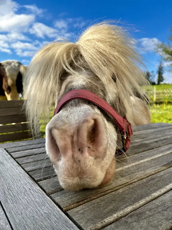 Mein Partner und ich halten in einem privaten Offenstall bei uns zuhause eine kleine Herde von zehn Pferden und Ponies. Drei Minis, ein Isländer und ein Selle Francais würden sich über etwas mehr Be-schäftigung freuen, sind aber alle nicht (mehr) reitbar. Wie bieten daher Spazier- bzw. Pflegebeteili-gungen einmal oder mehrmals die Woche an fixen Tagen an Erwachsene (nicht an Kinder, auch nicht in Begleitung Erwachsener, wir sind ein Adults-only-Stall), die Freude an Ponies haben, den Umgang mit Equiden kennen und mögen, aber nicht reiten möchten. Mögliche Tage sind Montag, Dienstag, Mittwoch, Donnerstag und Samstag.