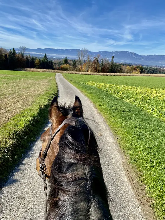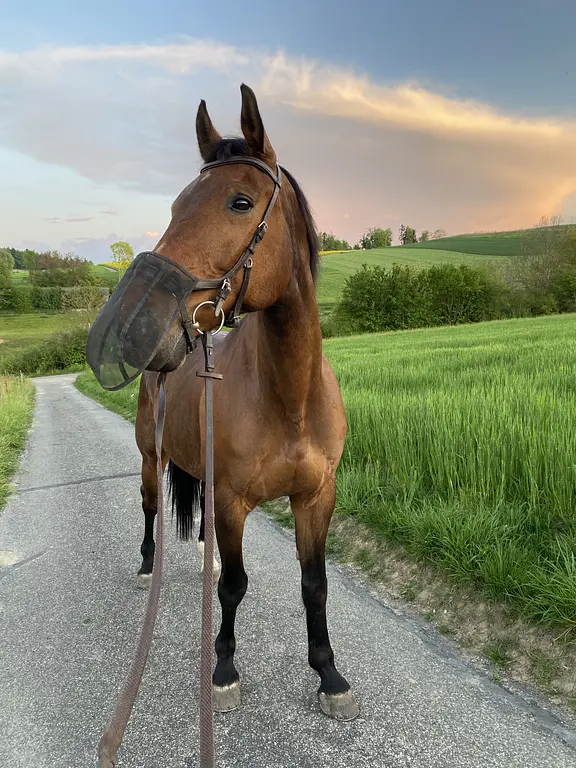 Mein Wallach braucht eine Person, die weiss was sie will. Er ist sicher im Verkehr und angenehm zu Reiten. Vom Boden aus eher frech, deshalb ist eine konsequente, durchsetzbare Hand Voraussetzung.