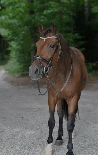 Rocky ist in der Dressur bis M ausgebildet und hat bereits erste Erfahrungen im Springen gesammelt. Er ist sehr brav, gelassen und angenehm im Umgang.