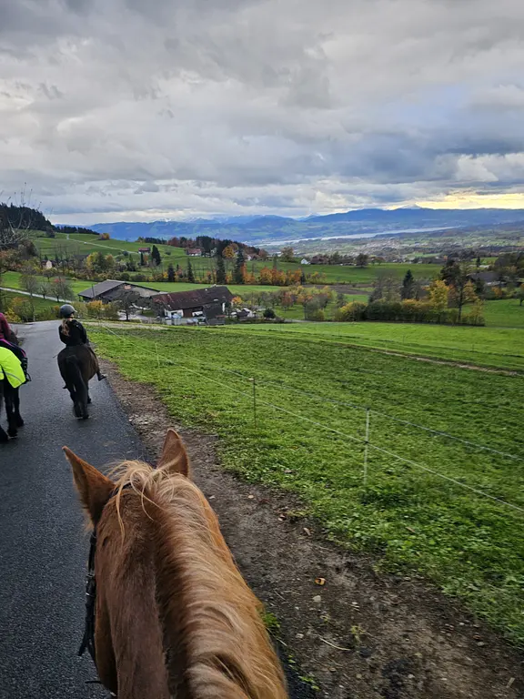 Vielseitige Arbeit: Reiten (Platz, Roundpen, Gelände), Bodenarbeit, Zirkuslektionen oder einfach nur gemütliche Spaziergänge im traumhaften Reitgebiet.