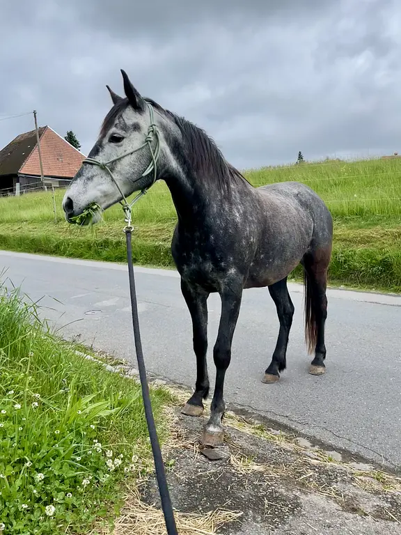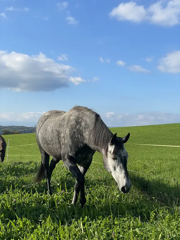 Meine Stute ist menschenbezogen, neugierig, lieb und arbeitet gerne. Sie hat aber auch eine eigene Meinung und braucht daher Klarheit in der Kommunikation. Sie steht in einem Offenstall mit Reitplatz in 3019 Bern und das Reitgebiet Berner Forst befindet sich in unmittelbarer Nähe.