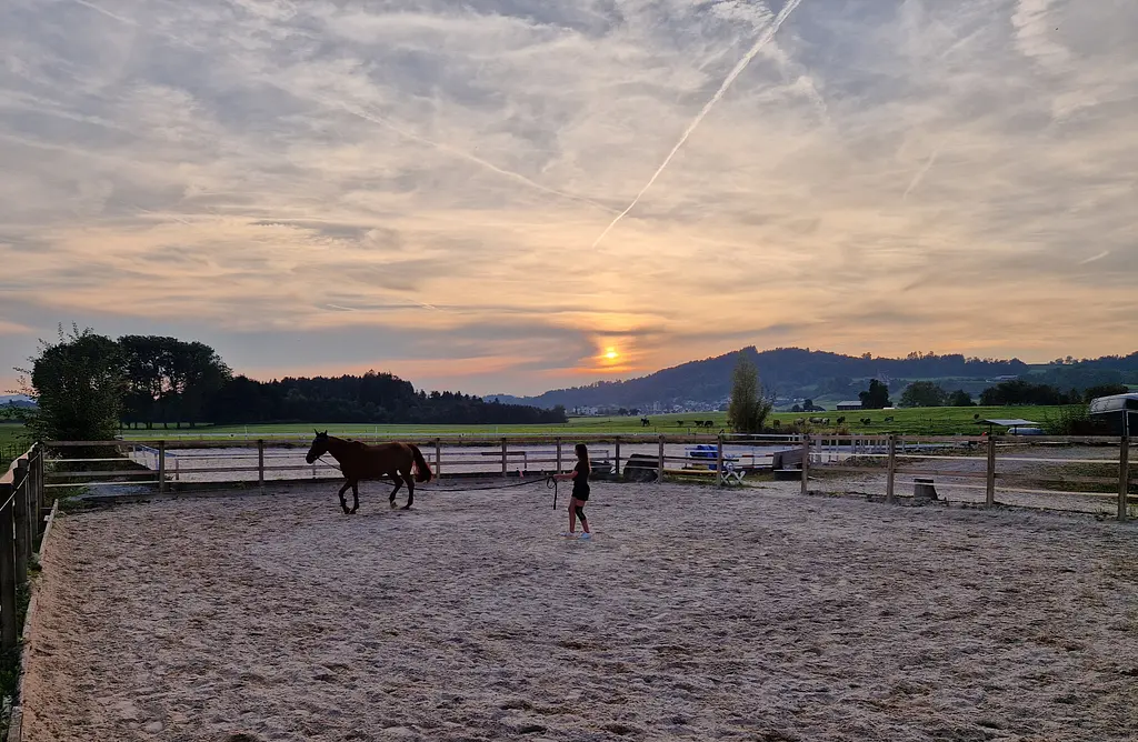 Unser Stall bietet ein Sandviereck, Longierplatz, Laufband. Es befindet sich eine Halle im Dorf welche auf Anfrage und Bezahlung benutzt werden darf.