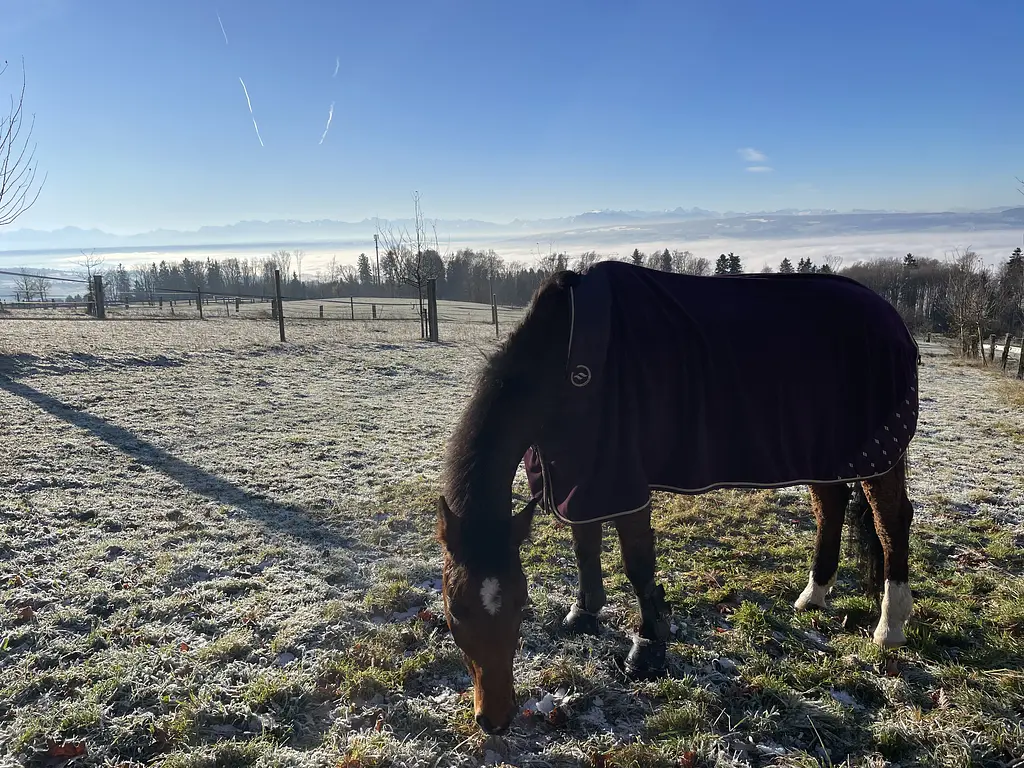 Mein Wallach steht auf dem Hasenberg in Widen AG. Er ist 20Jahre jung und in der klassischen Reitweise in Dressur und Springen ausgebildet.