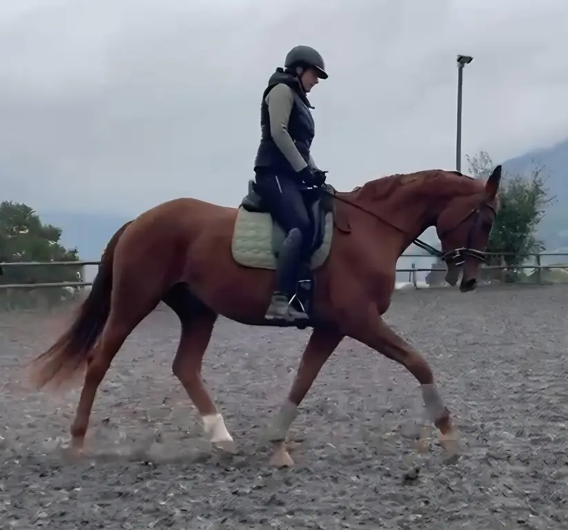 Sie wird dressurmässig geritten, kennt Stangenarbeit und arbeitet sehr gerne. Da sie in der Vergangenheit wohl schlechte Erfahrungen auf Turnieren gemacht hat, sollte eine Turnierteilnahme nicht im Vordergrund stehen, bei Eignung stehe ich dem aber nicht entgegen. Du darfst sie gerne auch mental auslasten mit Bodenarbeit/Unterricht/Ausreiten/sonstigen Kursen. Am Hängerfahren arbeiten wir zur Zeit noch.