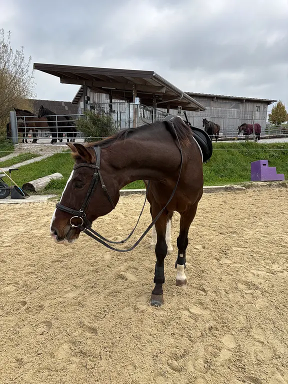 Andino steht in einem Aktivstall mit einer tollen Stallgemeinschaft, einem schönen Platz und Roundpen und einem traumhaften Ausreitgelände. Der Reitverein Horgen ist in 10-15 Gehminuten erreichbar.