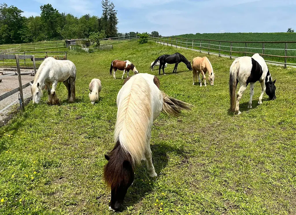 Der Stall ist zwar in knapp 15 min Fussmarsch vom Bahnhof Mettmenstetten aus zu erreichen, ein Fahrzeug wäre aber von Vorteil. Parkplätze hat es direkt beim Stall.