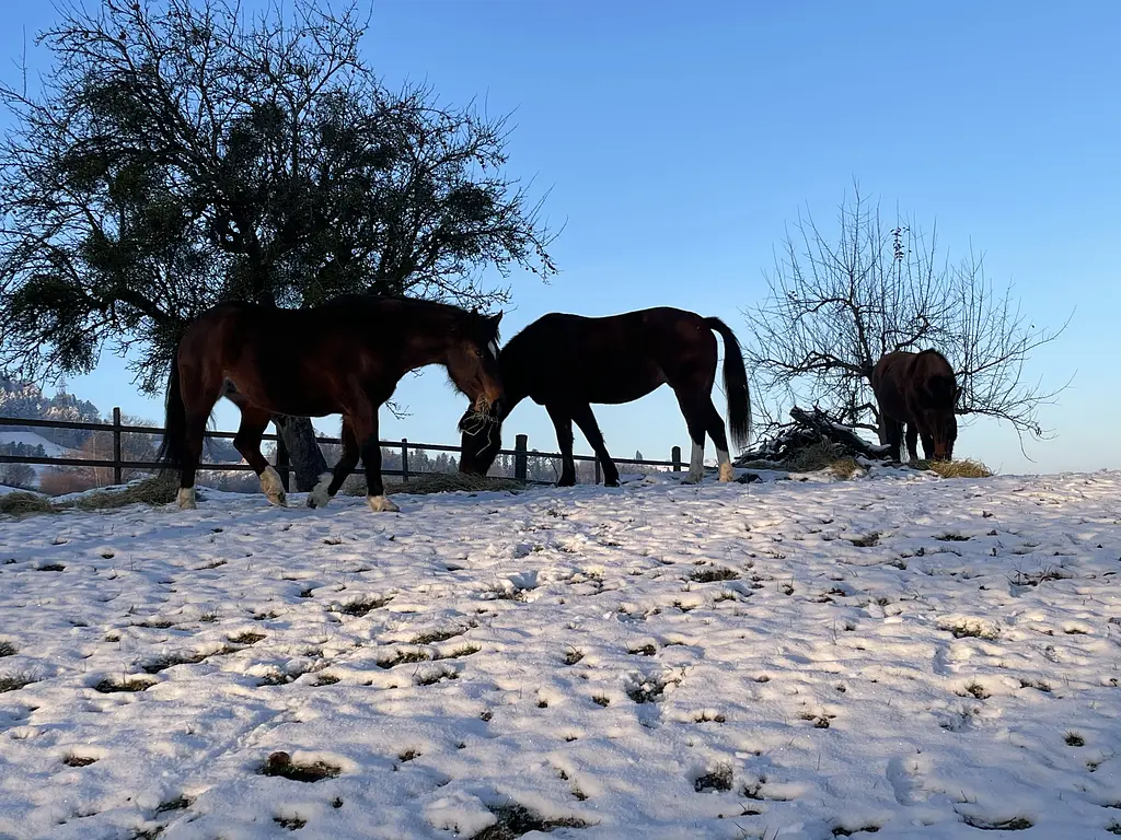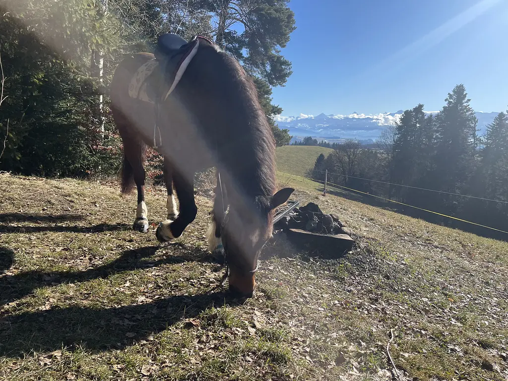 Suche eine zuverlässige Person, die mir bei allem mit meinem Pferd helfen mag: ausreiten, Stallarbeiten, Kostenbeteiligung, Weidepflege. Es besteht die Möglichkeit bei mir auf dem eigenen grossen Viereck Reitstunden zu nehmen. Mein Pferd ist eine kleine Freibergerstute, 10jährig, sehr aufgeweckt, sehr fein zu reiten, mag gerne Neues lernen. Sie hat eine Stallgefährtin, ebenfalls eine Freibergerstute, 10jährig, sehr elegant, deren Halterin ebenfalls eine Reitbeteiligung sucht. Deshalb suchen wir eigentlich zwei Personen, die zusammen mit zwei Pferden ausreiten möchten.