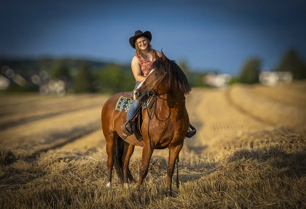Sie ist gut erzogen und fein zu reiten, hat jedoch einen eher dominanten Charakter und kann gelegentlich etwas „dramatisch“ reagieren. Deshalb ist sie nicht für unsichere oder unerfahrene Reiter geeignet. Geritten wird sie mit Westernsattel und Knotenhalfter, zudem kennt sie etwas Parelli (sie ist nicht western ausgebildet, es spielt also keine Rolle welchen Reitstil du gelernt hast :)).