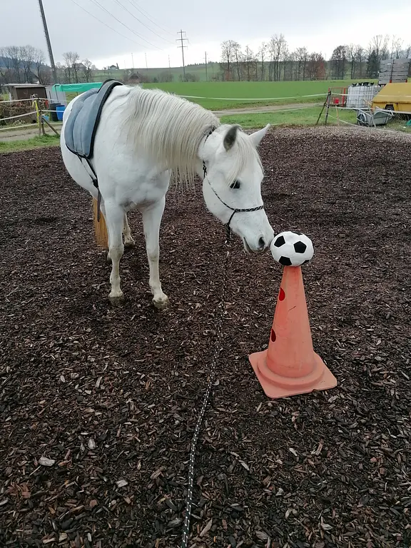 Mein Pferd ist freundliche, menschenbezogen und für vieles zu motivieren. Im Winter und bei Wind etwas schreckhafter und unruhiger und braucht dann eine sichere Reiterin/Bezugsperson.
